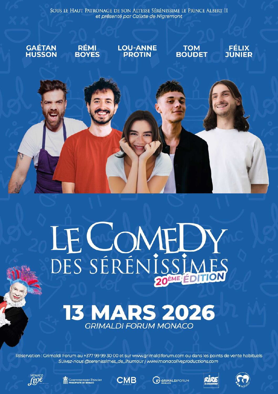 MONACO LIVE PRODUCTIONS célèbre 20 ans de rires et d’émotions avec la 20ᵉ édition des Sérénissimes de l’Humour, du 10 au 14 mars 2026.
